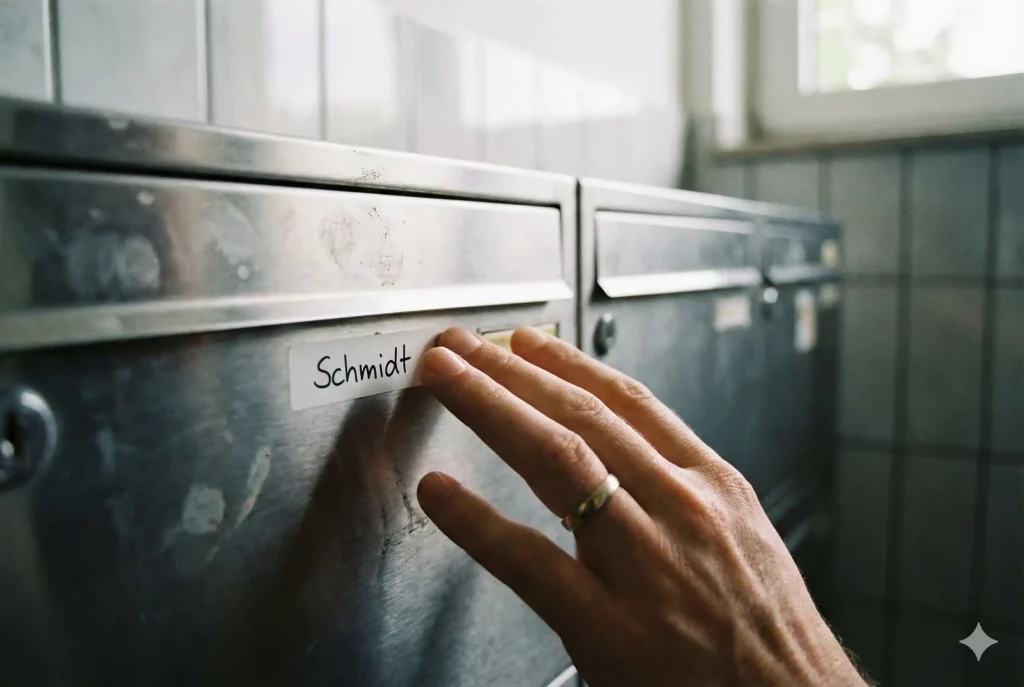 Anmeldung işlemini yaptınız, tebrikler! Eve döner dönmez yapmanız gereken ilk şey: Posta kutusuna soyadınızı yapıştırmak. Almanya’da posta kutusunda isminiz yoksa, postacı mektubu (Vergi Numaranızı, Banka Kartınızı) bırakmaz ve geri götürür. Bu size haftalar kaybettirir.